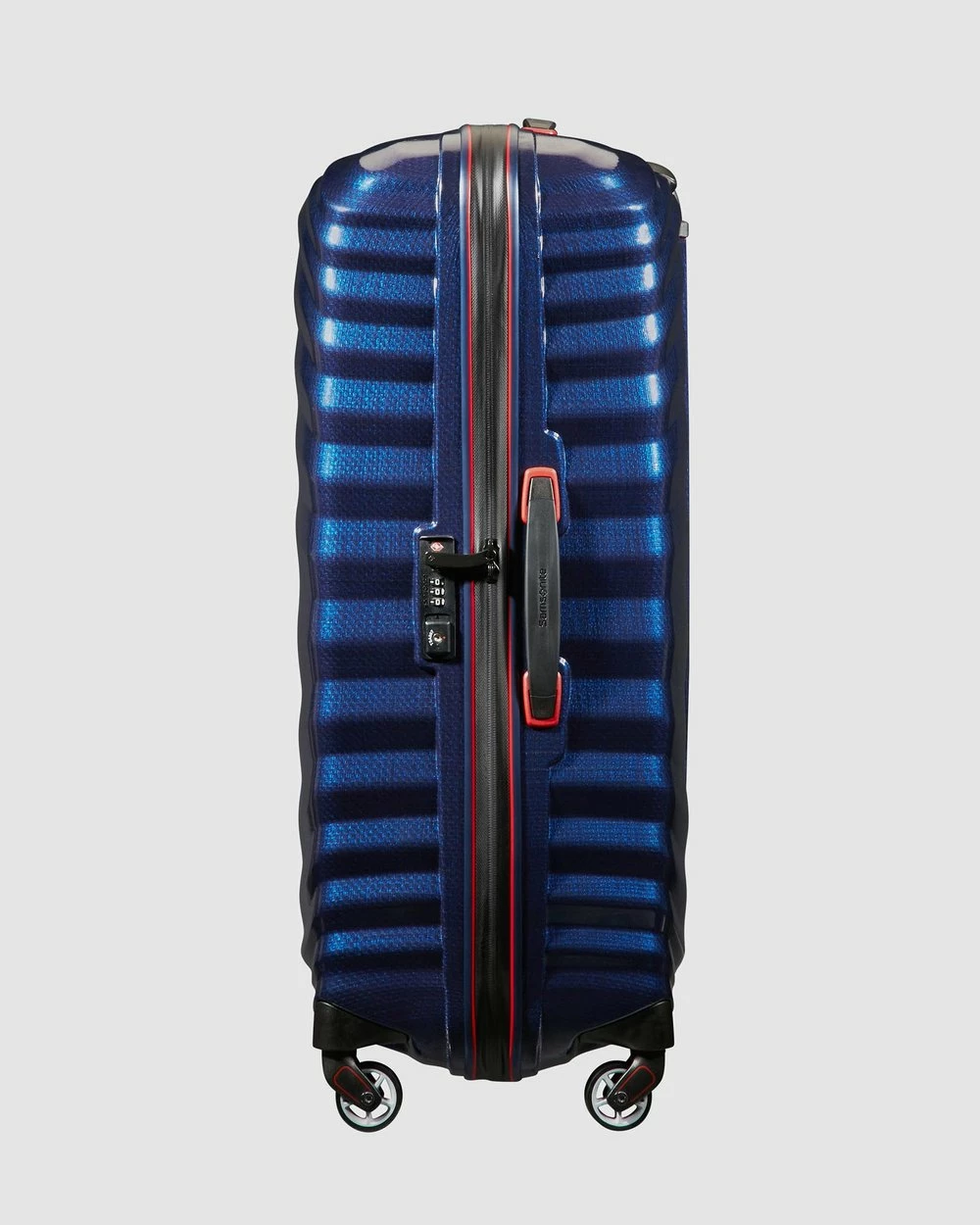 Designed for lively tech-savvy travellers, the Lite-Shock Sports 75cm Spinner Case by Samsonite offers a three-dimensional durable construction with water-resistant zips and a three-digit TSA combination lock.