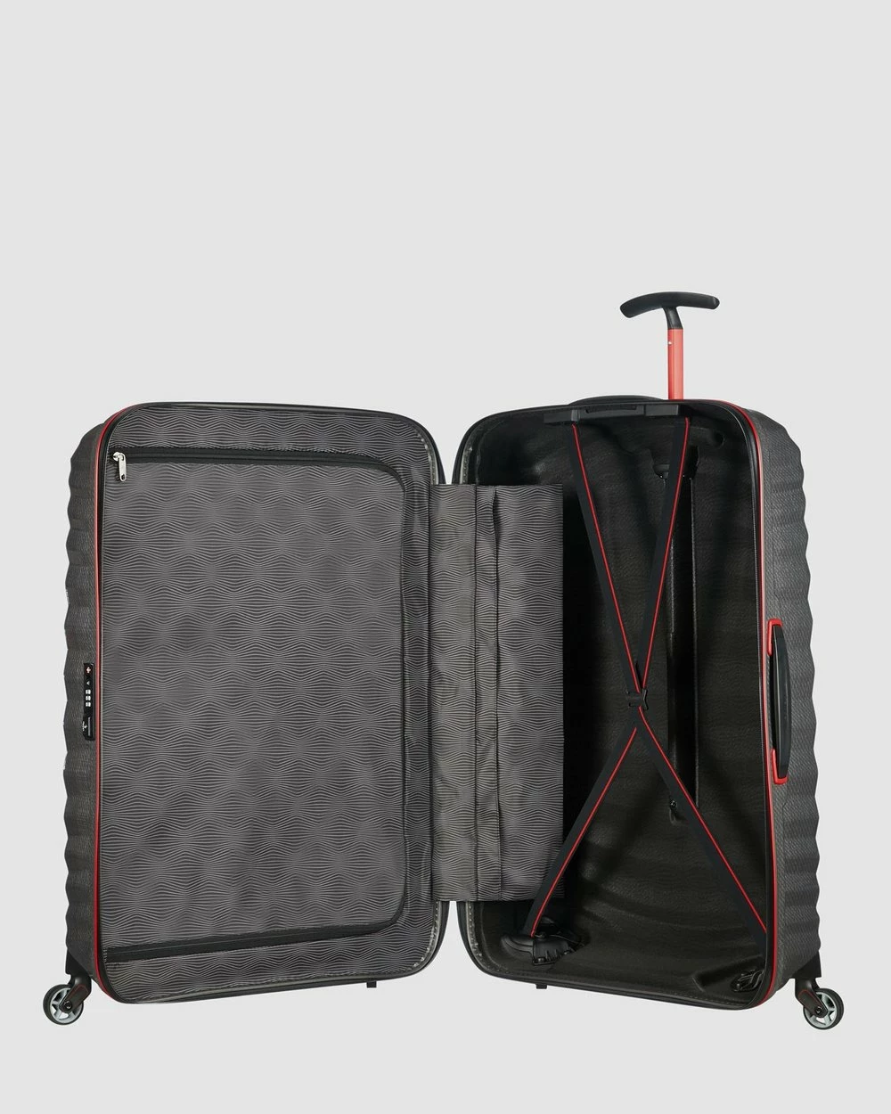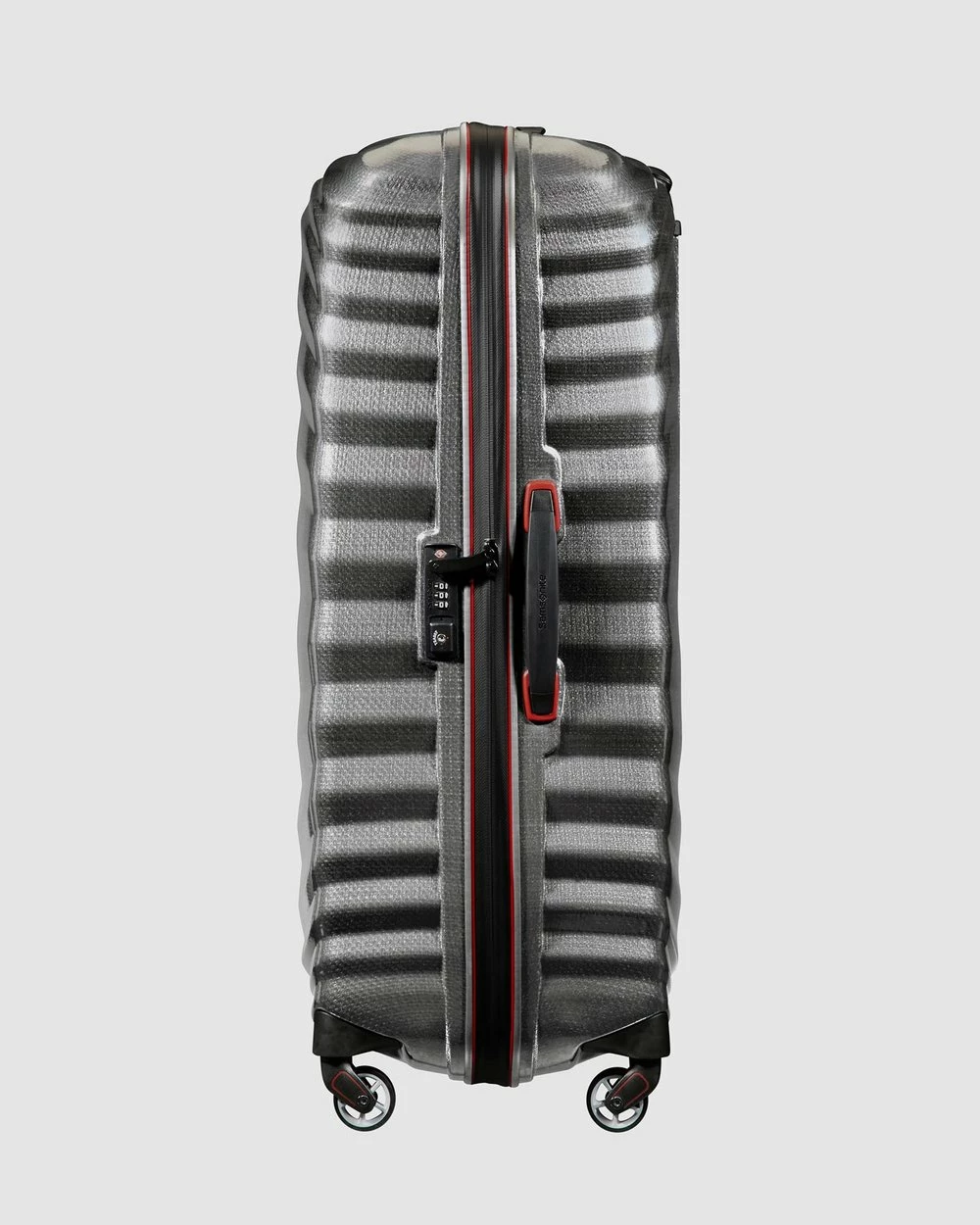 Designed for lively tech-savvy travellers, the Lite-Shock Sports 81cm Spinner Case by Samsonite offers a three-dimensional durable construction with water-resistant zips and a three-digit TSA combination lock.