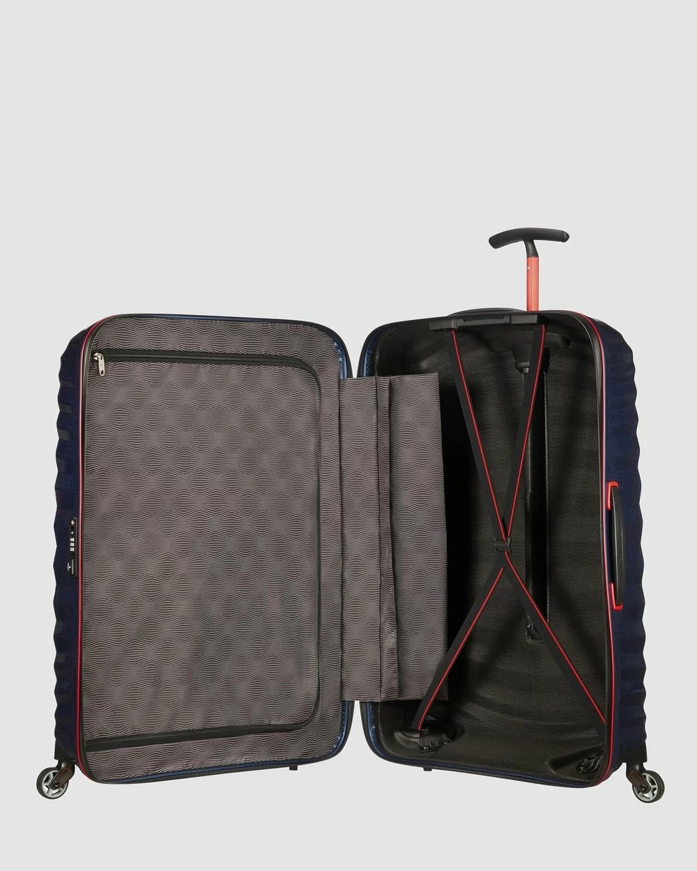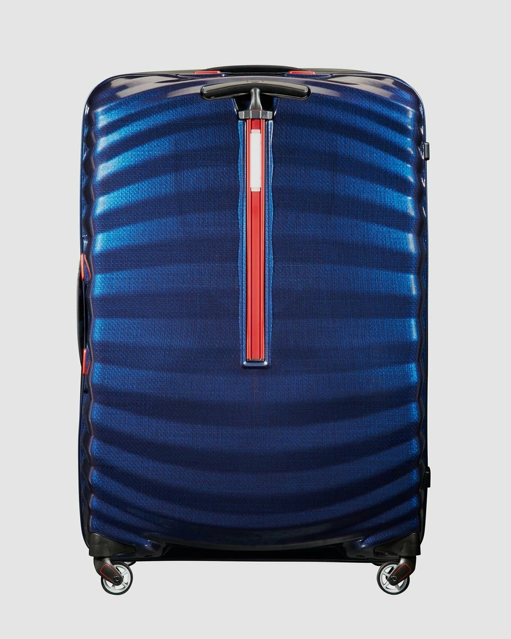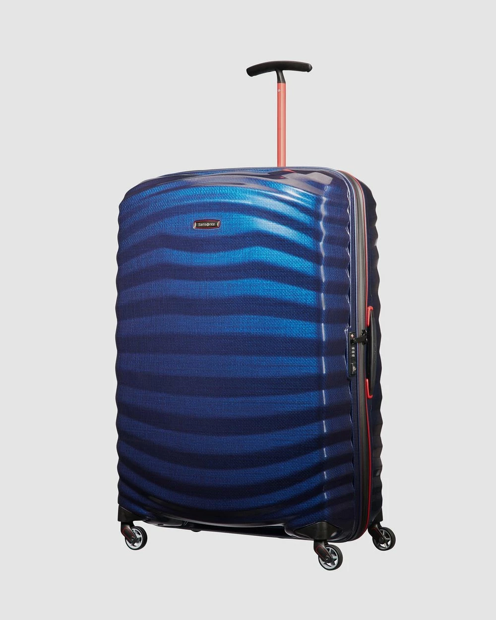 Designed for lively tech-savvy travellers, the Lite-Shock Sports 81cm Spinner Case by Samsonite offers a three-dimensional durable construction with water-resistant zips and a three-digit TSA combination lock.