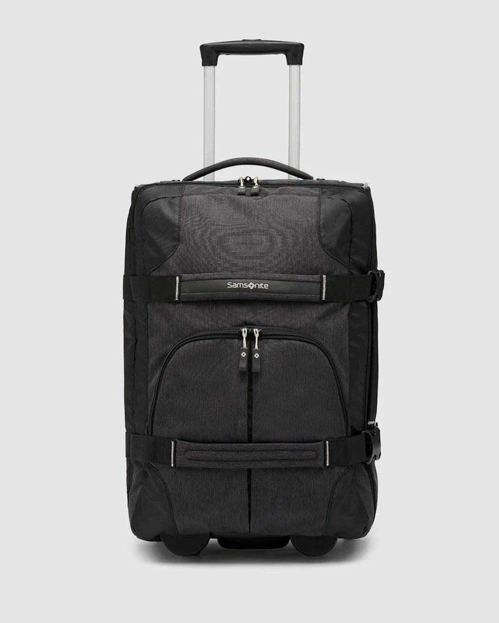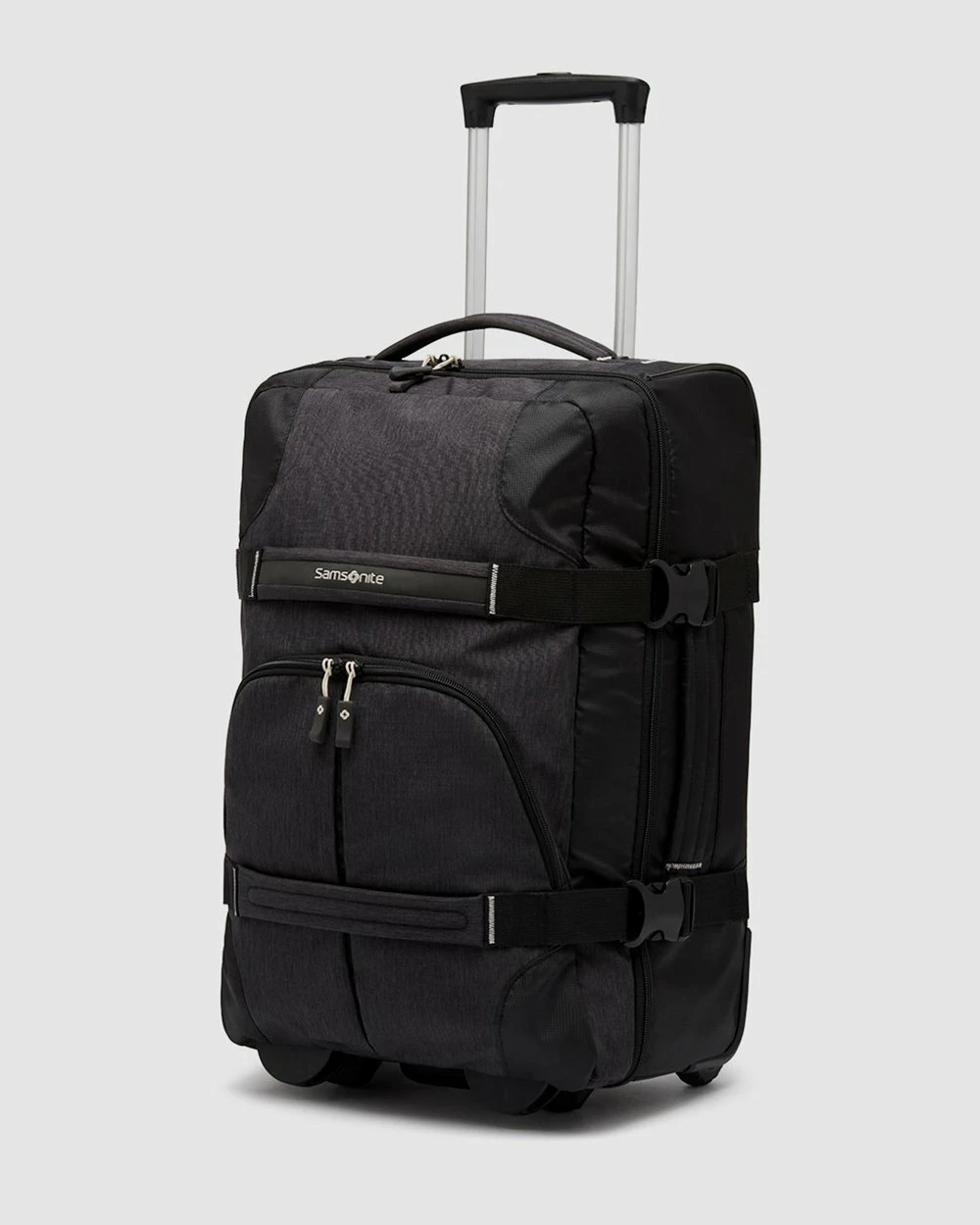 A seamless fusion of functionality and design, the Rewind Duffle Wheeled 55cm Bag by Samsonite features external compression straps for additional support, a lockable main compartment and protective kick plates to the two wheel design.