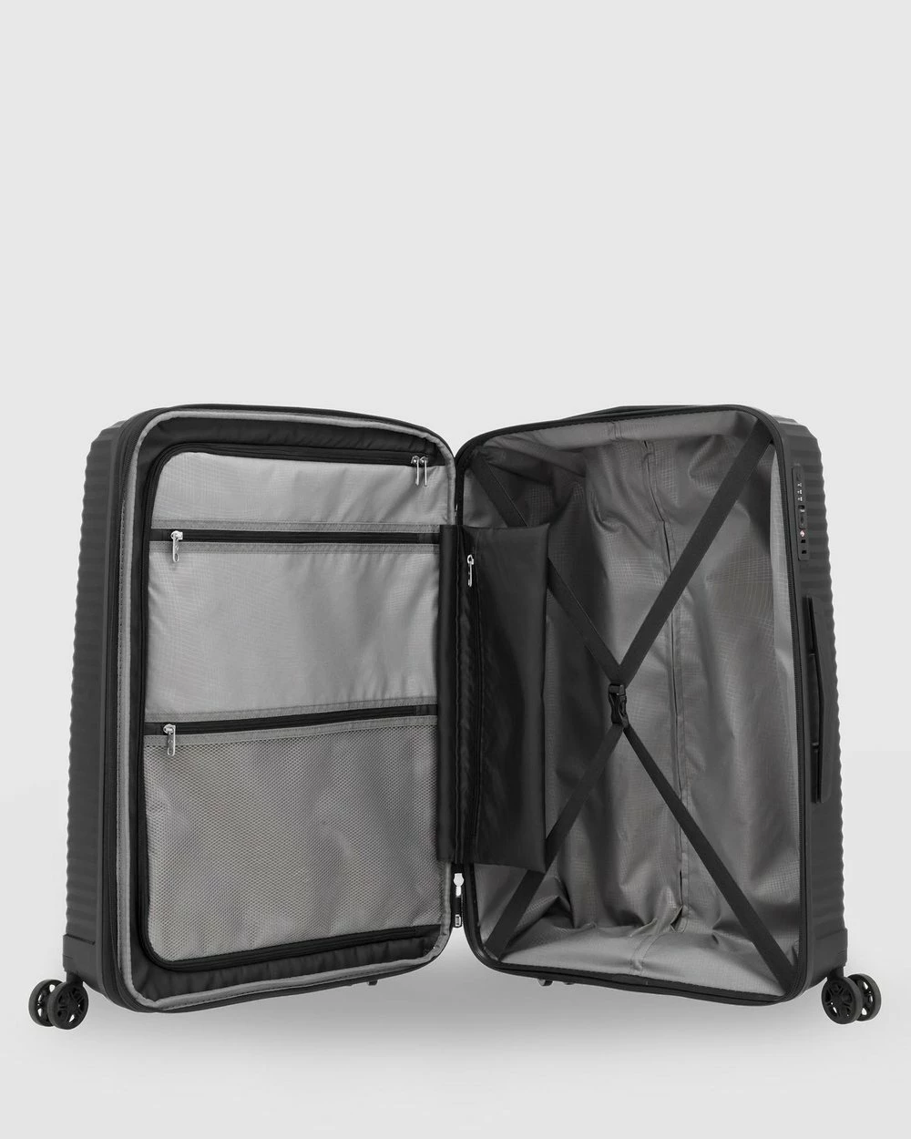 – Integrated 3-digit TSA combination lock