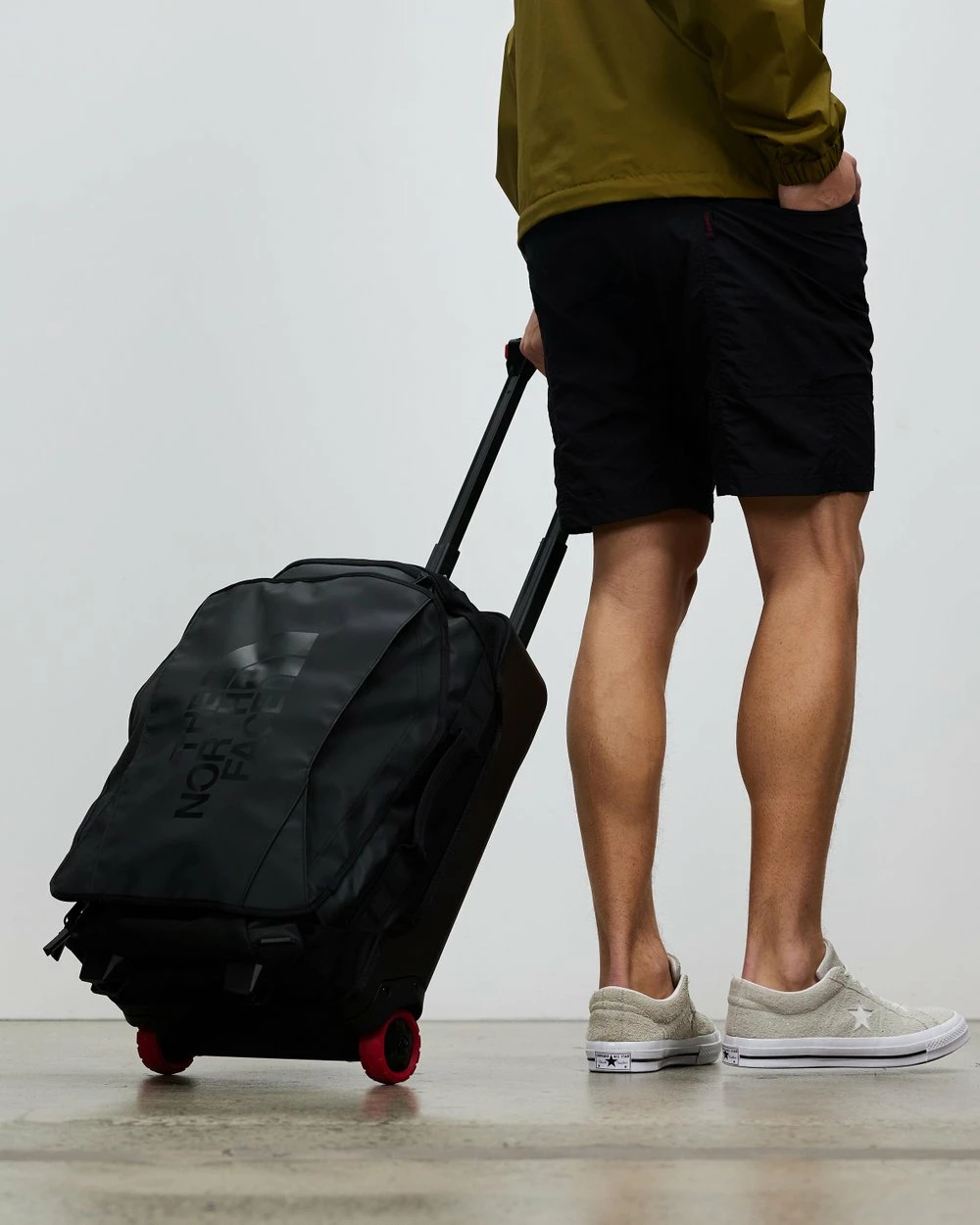 – Luggage extendable pull-handle; rolling wheels